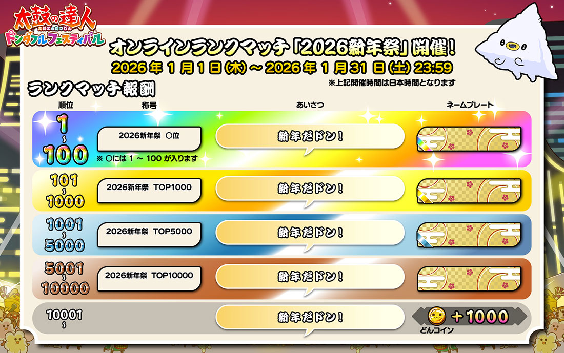 ※2025年12月のオンラインランクマッチ「あったかフェス」ランキング報酬は1/1(木)1:00~1/31(土)23:59の期間のみ受け取り可能です。